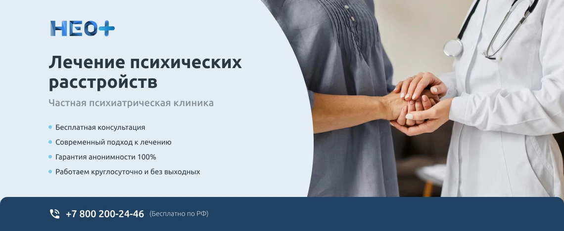 Чтобы ускорить процесс нормализации состояния, обратитесь в клинику «НеоПлюс» в Гуляйполе. У нас работают профессиональные врачи, которые знакомы с особенностями лечения заболевания. Они изучат состояние пациента, проведут диагностику и разработают грамотную схему лечения. Чтобы обратиться в отделение психиатрии и получить квалифицированную помощь, позвоните по телефону ☎️ +7 (800) 200-24-46. Дополнительно можно оставить заявку через форму обратной связи. Наши сотрудники ответят на звонок, после чего подскажут, как воспользоваться услугой.